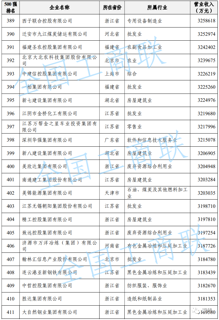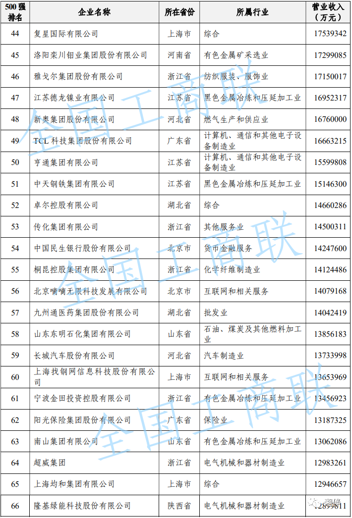 2023中國民營企業(yè)500強(qiáng)榜單