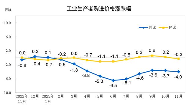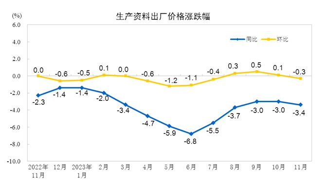 2023年11月份工業(yè)生產(chǎn)者出廠價格同比下降3.0% 環(huán)比下降0.3%