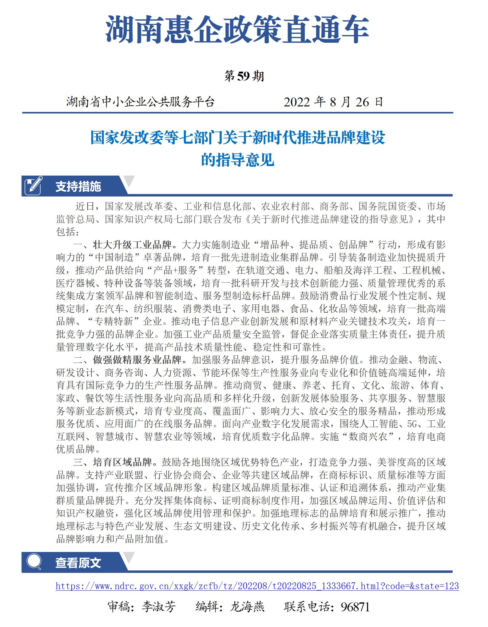 國家發(fā)改委等七部門關(guān)于新時(shí)代推進(jìn)品牌建設(shè)的指導(dǎo)意見