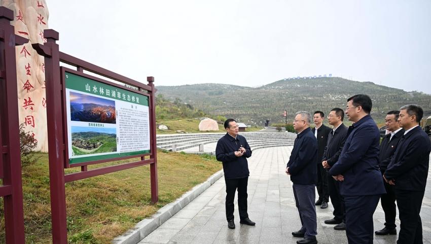 (10月9日,沈曉明來到冷水江錫礦山,實(shí)地察看礦山修復(fù)、尾礦庫治理、銻污染河道治理等工作。)